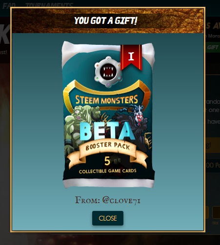 During the live stream @clove71 was very generous (as usual!) and was offering free booster packs, cards and starter kits to the viewers. I was lucky enough to get the first booster pack: