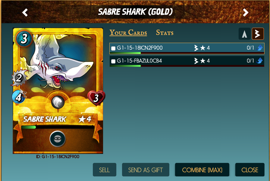 I've been playing Steem Monsters since last October. I don't have a good reason why I should win this card. To be honest, I just like the shiny Gold Foil cards and since I don't have a gold Saber Shark I want to win!