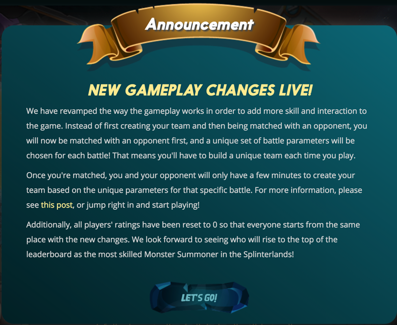 You can read the offical annoucement here: https://steemit.com/steemmonsters/@steemmonsters/steem-monsters-gameplay-changes-and-return-of-season-rewards