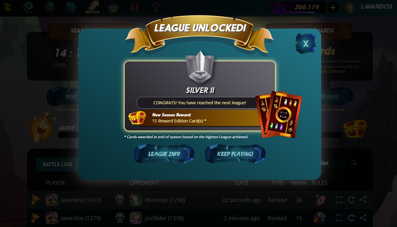 Тем не менее, просадив батарейку DEC до 75%, мне удалось заработать чуть больше 200 DEC и даже подняться на один уровень в лиге, дойдя до Серебро 2: