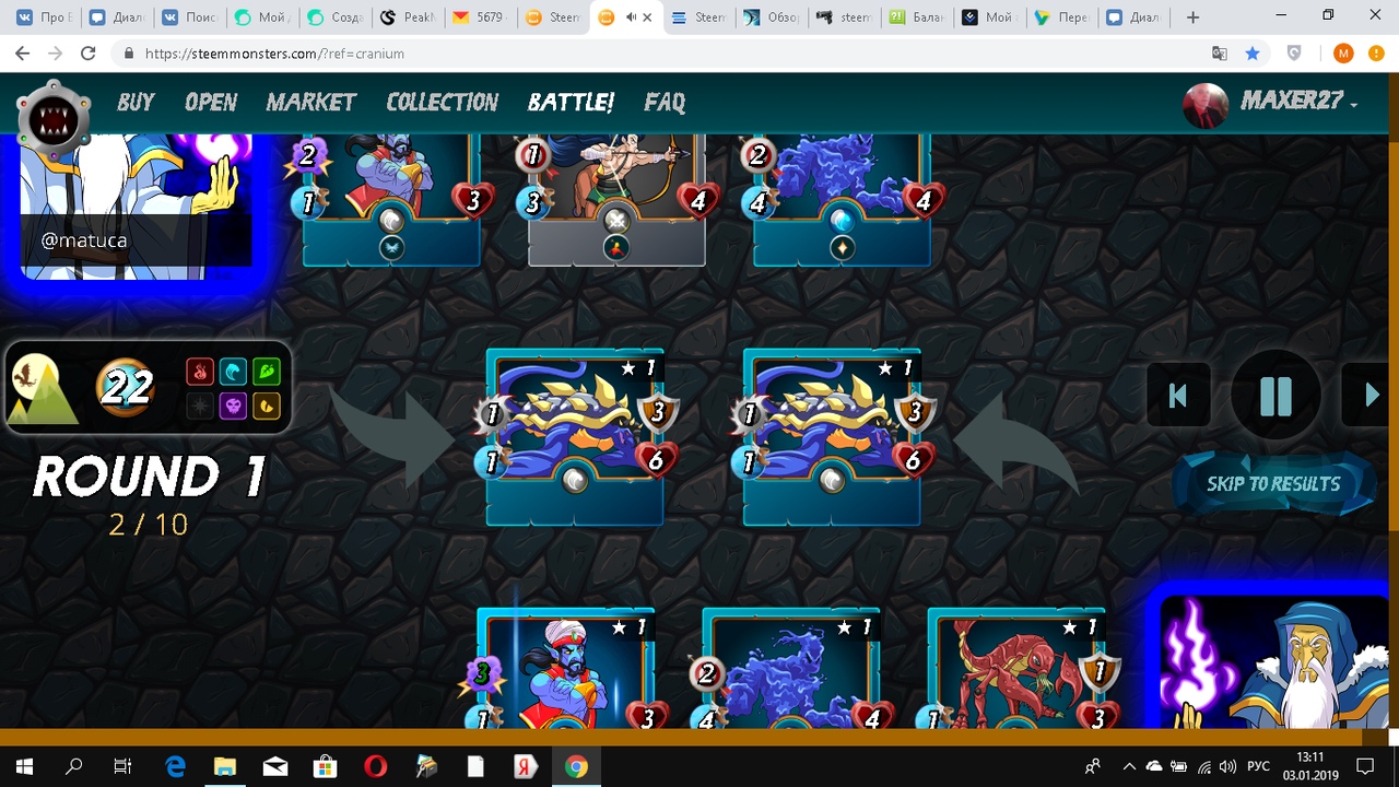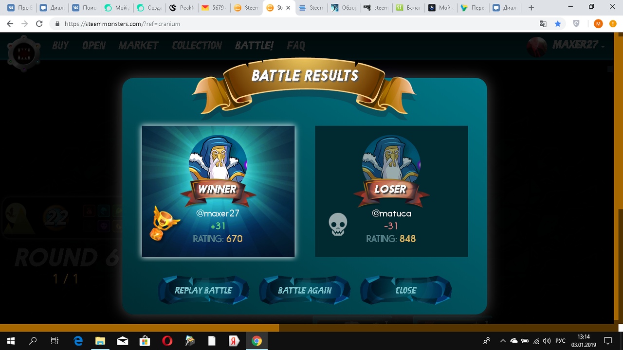 Битву вы можете посмотреть, а можете пропустить просмотр и перейти сразу к результатам. Но я вам советую на первых порах смотреть битвы, чтобы понять какой монстр как ходит и что умеет делать.