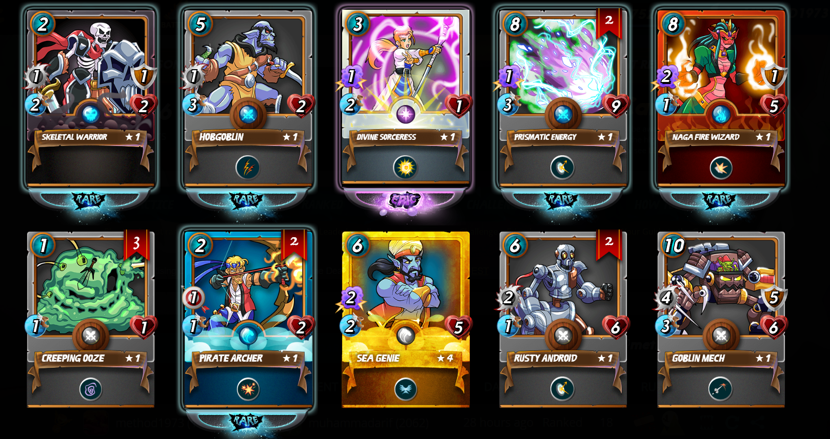My first full season on Splinterlandsmethod1973 (48)in #steemmonsters • 7 years ago Hello Splinterland world, I completed my first full season and made it to gold III! My reward cards. It's time to start working on getting some potions. See you next season. #spt #gaming #splinterlands #crypto