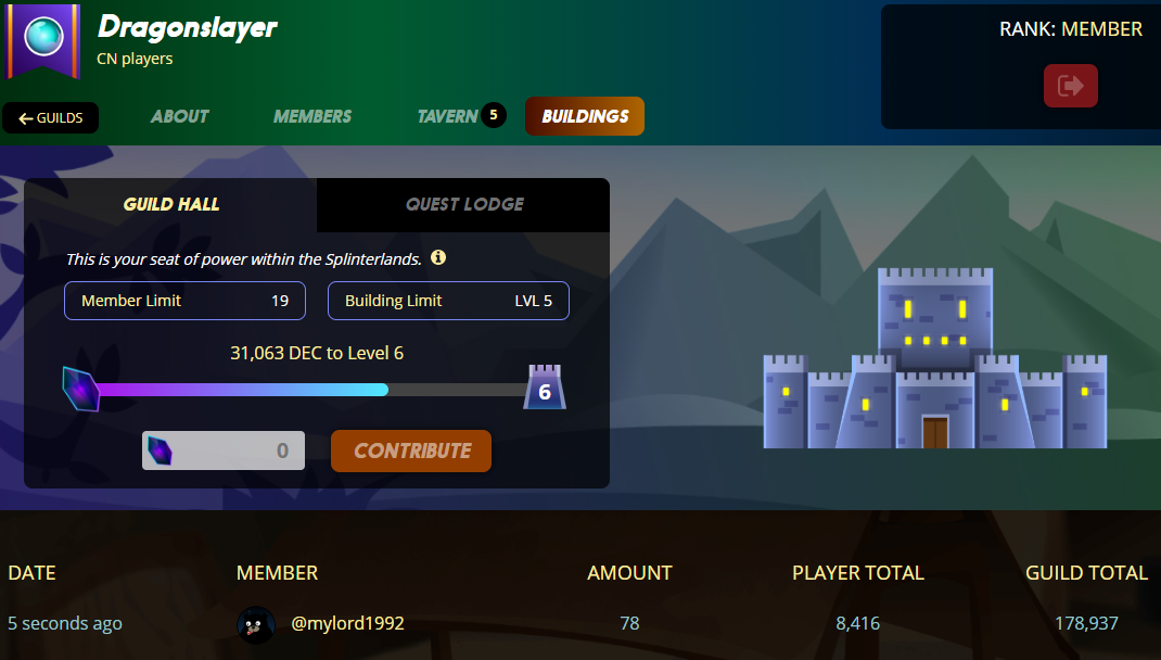本日貢獻78 DEC,總貢獻8416 DEC,公會還需要31063 DEC才能提升到第六,按照這樣下去,還得2-3個月了....