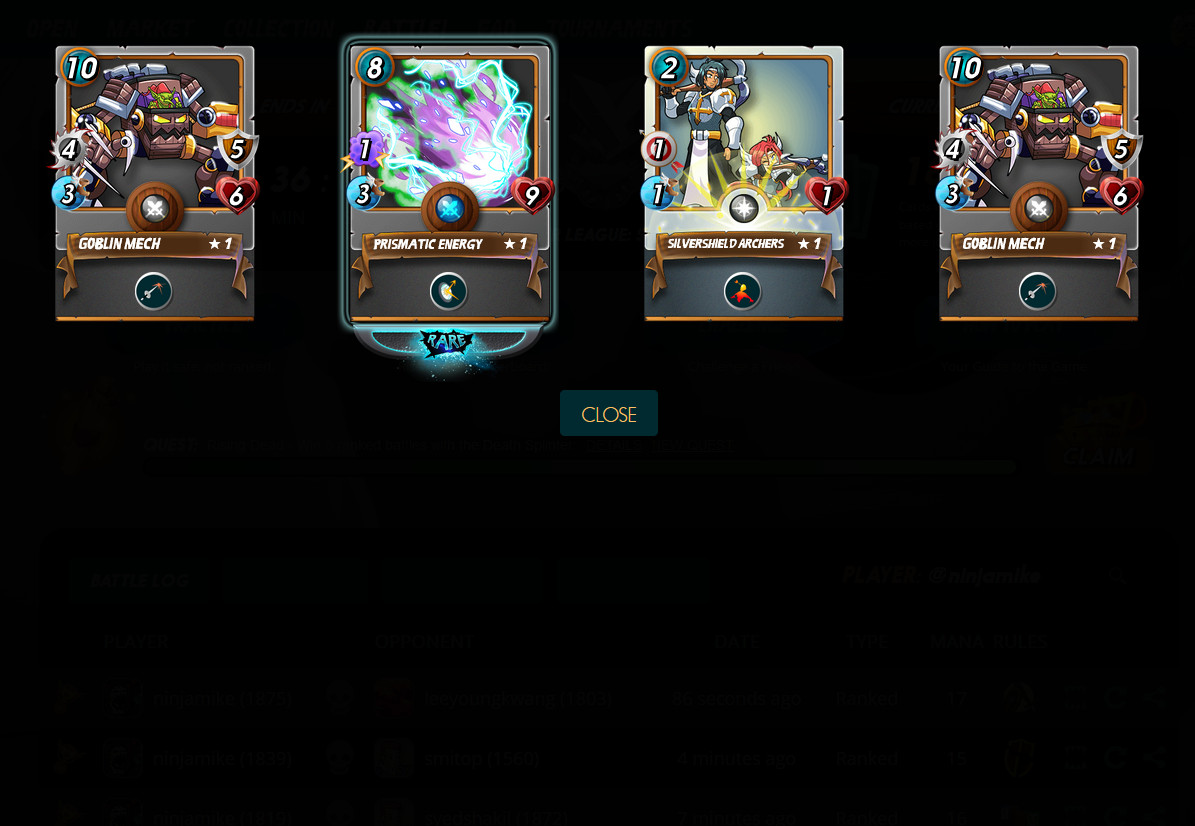 These are my Reward cards for the last couple of days. I am currently in the Silver I league and getting 4 cards per day. I've made it to the Gold III league for a few games but the competition seems strong this season. I'm in the top 500 players in ranking but I can't stay in the Gold III league.