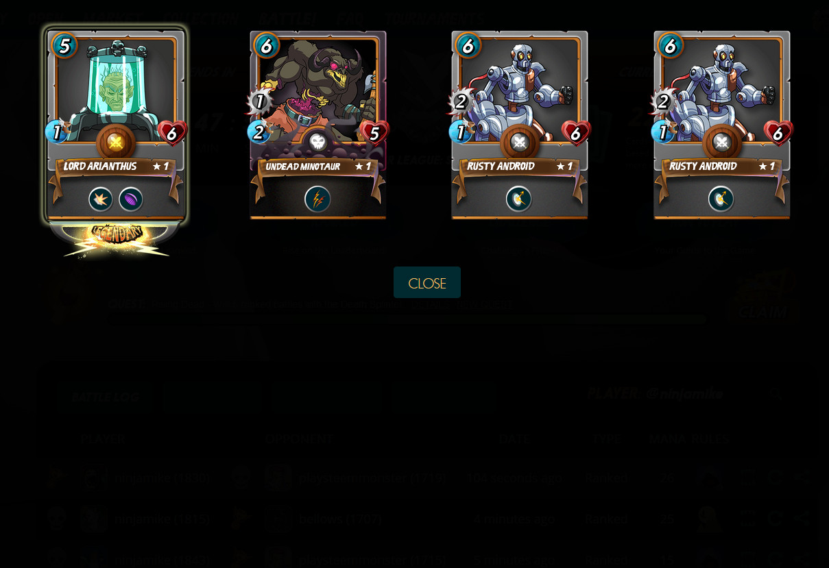 When I clicked on my first card I saw the gold shake and I got my first ever Lord Arianthus card. Feel free to leave hints or tips in the comments on the best situations to make use of this card.