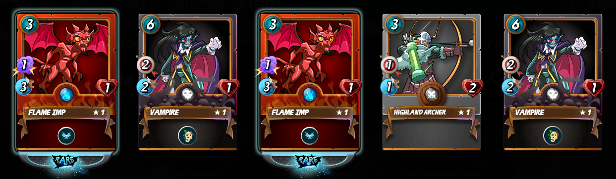 I got 2 flame imps and 2 more vampires in my quest rewards today. I am super excited because I got to level both cards today. The extra health for the imp is nice at 2 now instead of 1. I havent checked out the speed increase of the vampire.