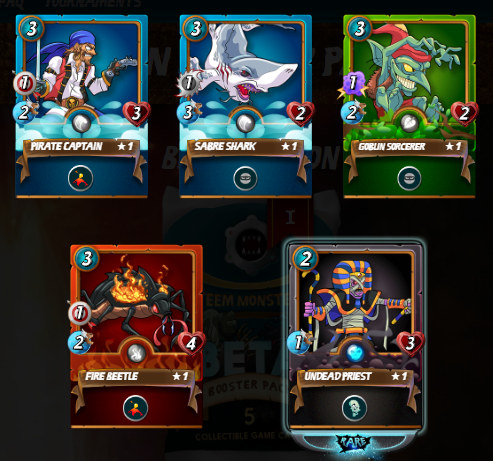 Pack Openingpandapuzzles (48)in #steemmonsters • 7 years ago Just opened a pack which contained: Pirate Captain Sabre Shark Goblin Sorcerer Fire Beetle Undead Priest