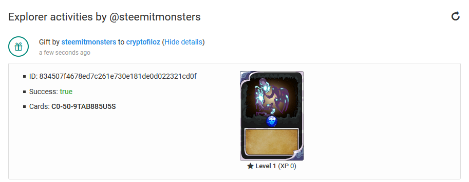 3 ) then I go on steemmonsters market and find a card to giveaway to you guys for that value.