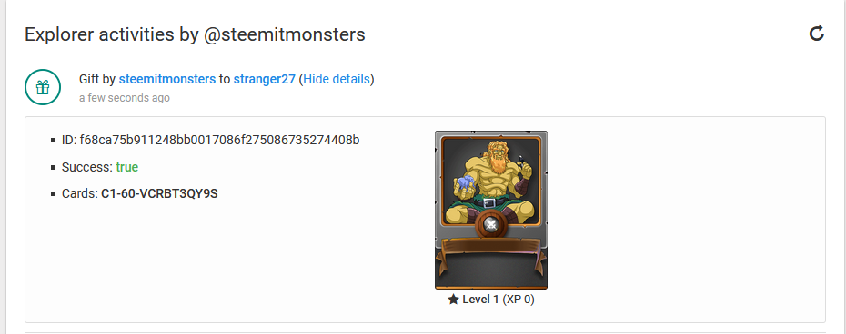 3 ) then I go on steemmonsters market and find a card to giveaway to you guys for that value.