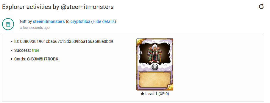 3 ) then I go on steemmonsters market and find a card to giveaway to you guys for that value.
