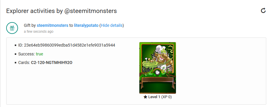 3 ) then I go on steemmonsters market and find a card to giveaway to you guys for that value.