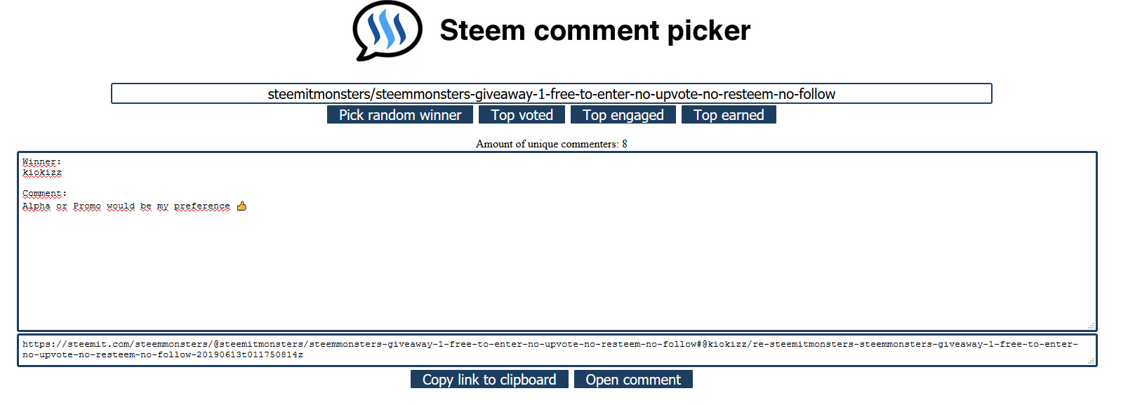 Congratulations @kiokizz you have won the last giveaway !