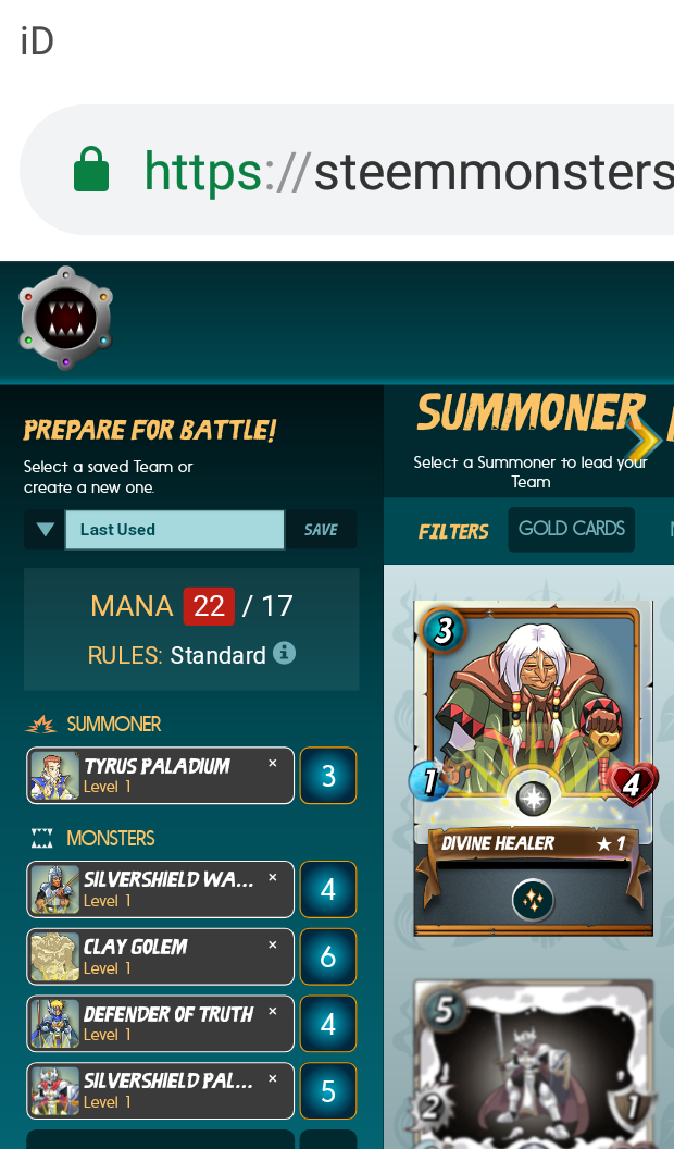 Thank you @clove71. I'll be honest, I'm only playing with cards that have been "gifted" to me so I have a very limited set to play with. In fact I only have 1 summoner with enough cards to make a team up.