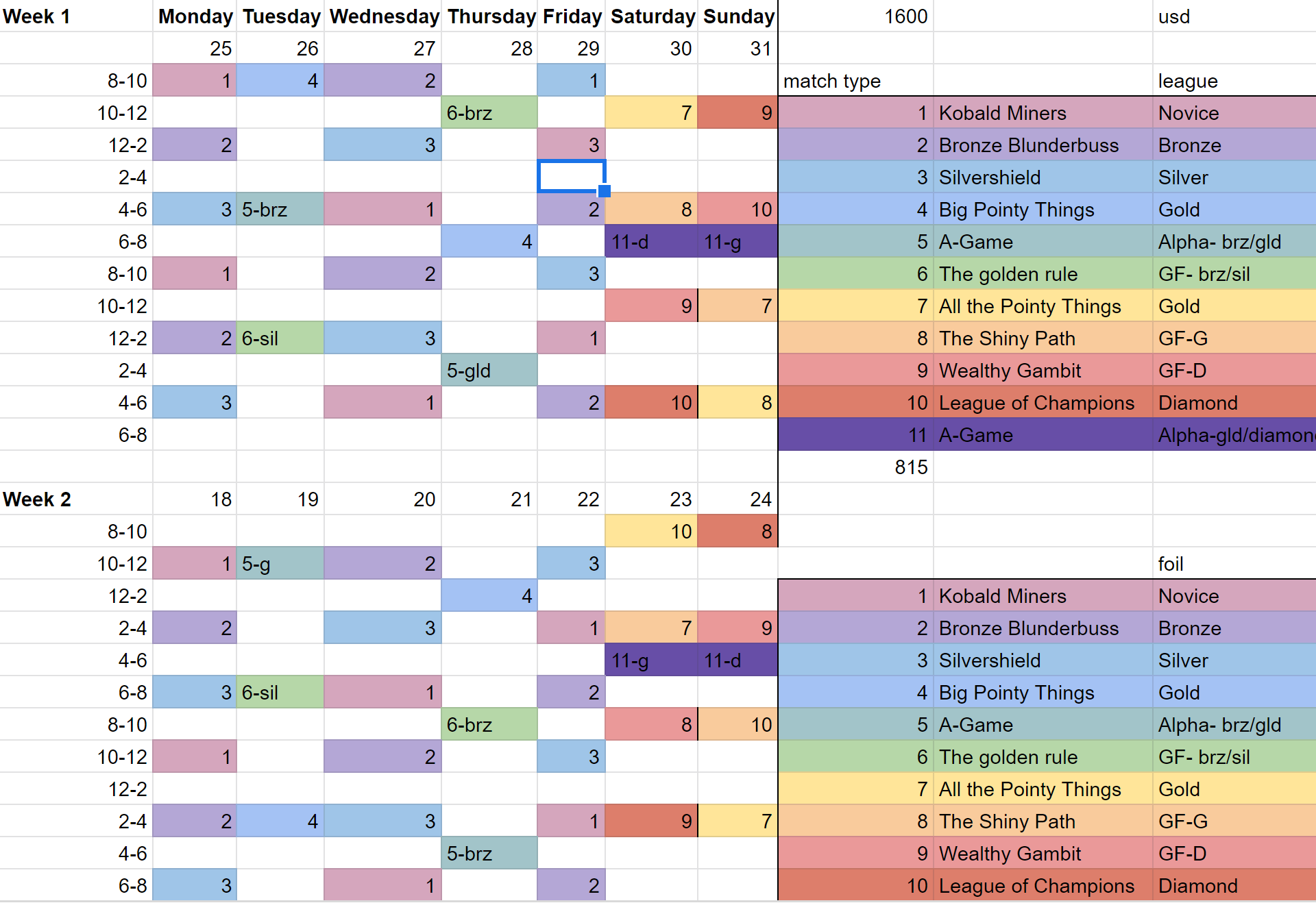 This chart is subject to change, but as of right now this is how tournaments are getting scheduled.