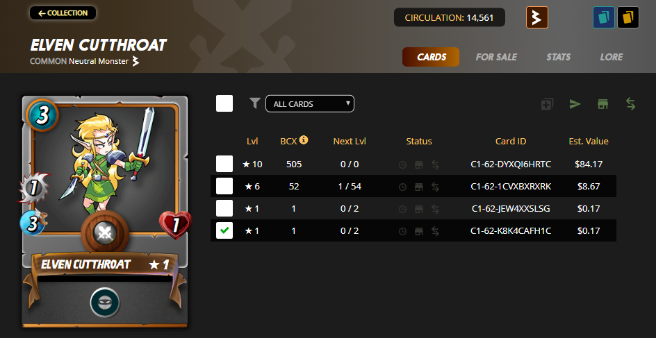 Todays giveaway is 1 beta Elven cutthroat card