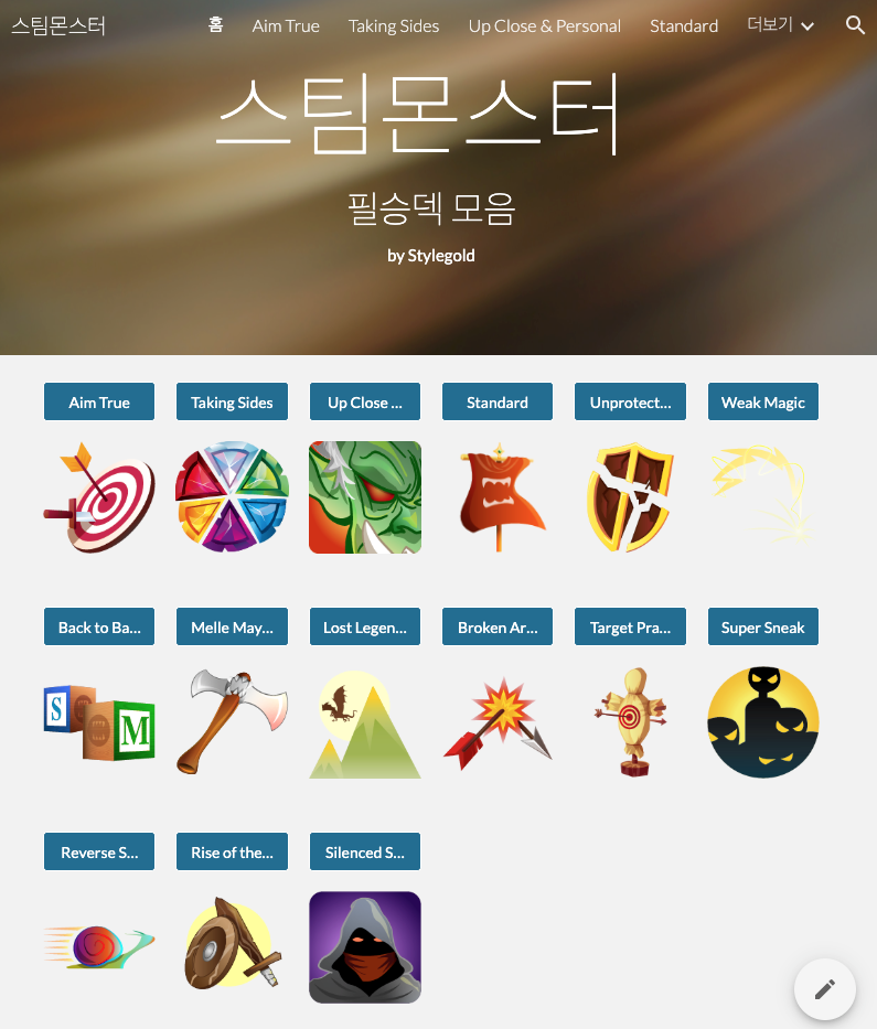 회사에서 문서파일 만들다가 실수로 열었는데 생각보다 UI도 깔끔하고 해서 뭔가 만들게 없을까 해서 이렇게 "스팀몬스터 필승덱 모음"이라는 사이트를 만들었어.