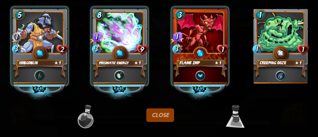 *my today's Dailyquest was the Watersplinter. I finished the quest after 10 games in Silver League 2. Since I did not miss many points for the Silver League 1, I hung two more games and look, I got 4 cards as a reward.