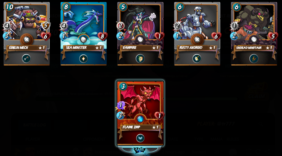 Daily Questtr777 (55)in #steemmonsters • 7 years ago Here is today's daily quest result; Entered a gold league and got 5 reward cards. Only one rare card among them.