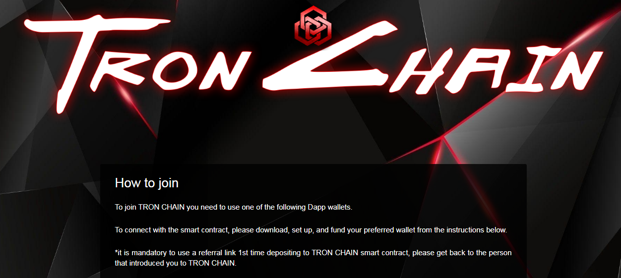 *It is mandatory to use a referral link 1st time depositing to TRON CHAIN smart contract,