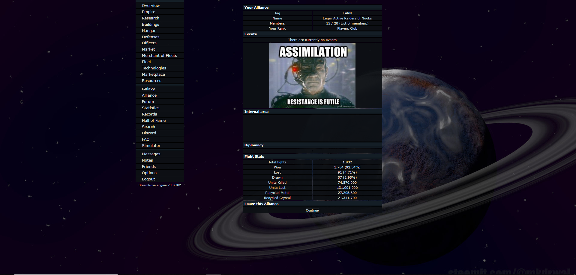 SteemNova is a space strategy game with hundreds
