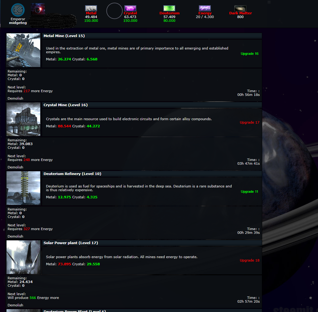 which is increased by upgrading the Solar power Plant or the Deuterium Power Plant.