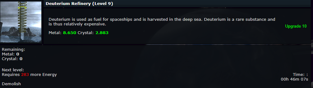 Deuterium is the rarest resource, as it is collected from deep sea. It is used for various Buildings and Research.