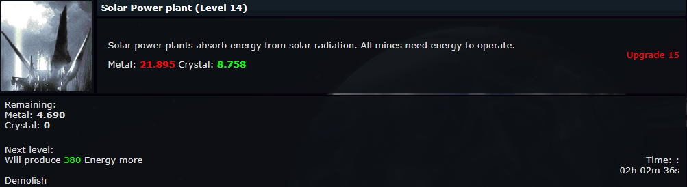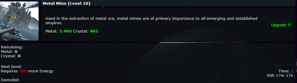 I'm not doing too good with the resources, as I'm still trying to figure out exactly how to save energy, while I might have built too many Metal and Crystal Mines :D