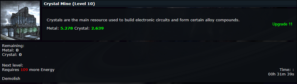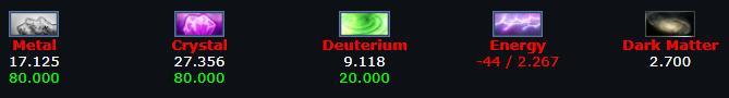 The game is great, there are 5 different kinds of resources - Metal, Crystals, Energy , Deuterium and Dark Matter.