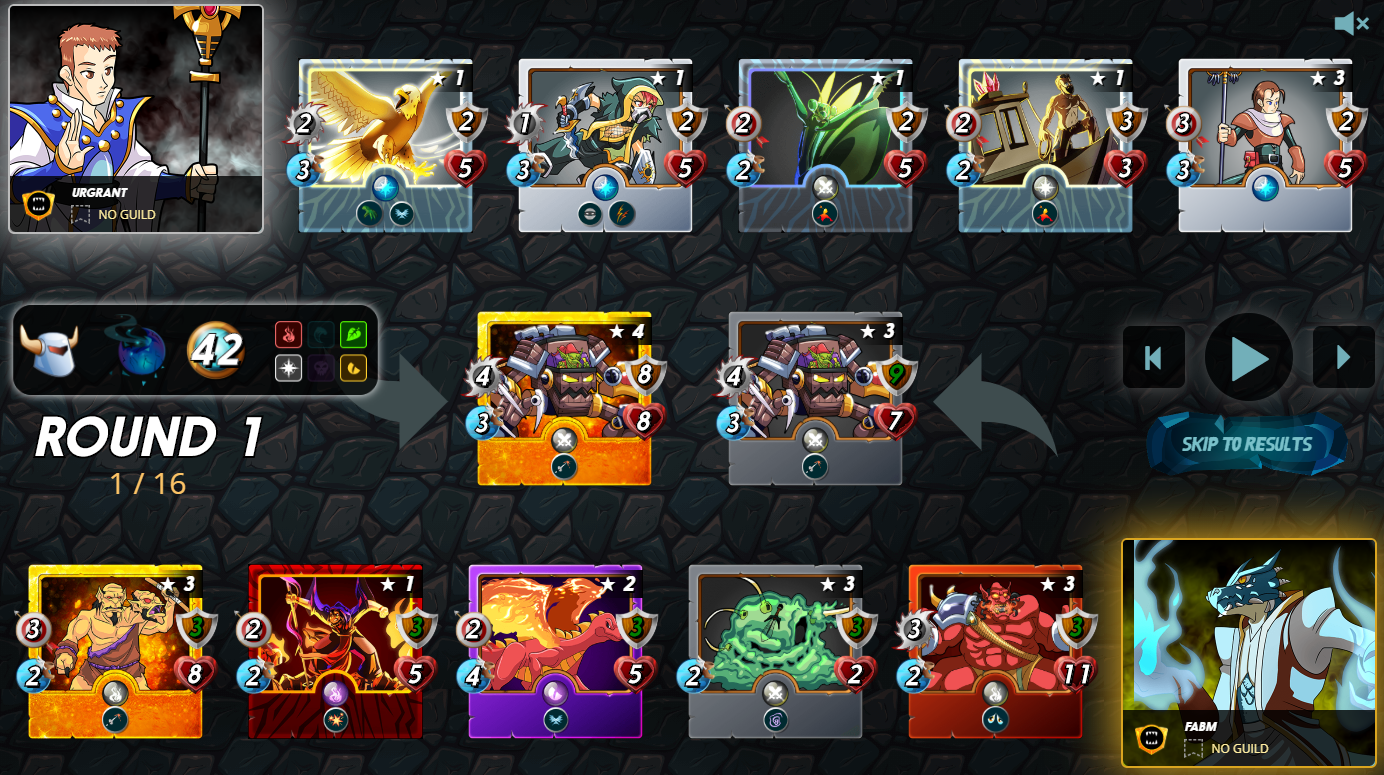 PS: just a fun game I had this week with the Goblin Mech: no monster loses at all: https://steemmonsters.com?p=battle&id=58827ed6a1df41dea1f161cd65d226c4a111ab6d&ref=fabm