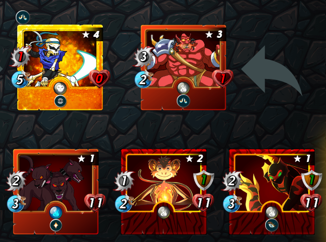 Cerberus lvl 1 : the healing ability is nice to protect the rear of my battle line as I don’t expect my enemy to have much sneaky monsters. Also if it end up to be the last standing monster it can easily win if at that point the enemy attack strength is less than 3.