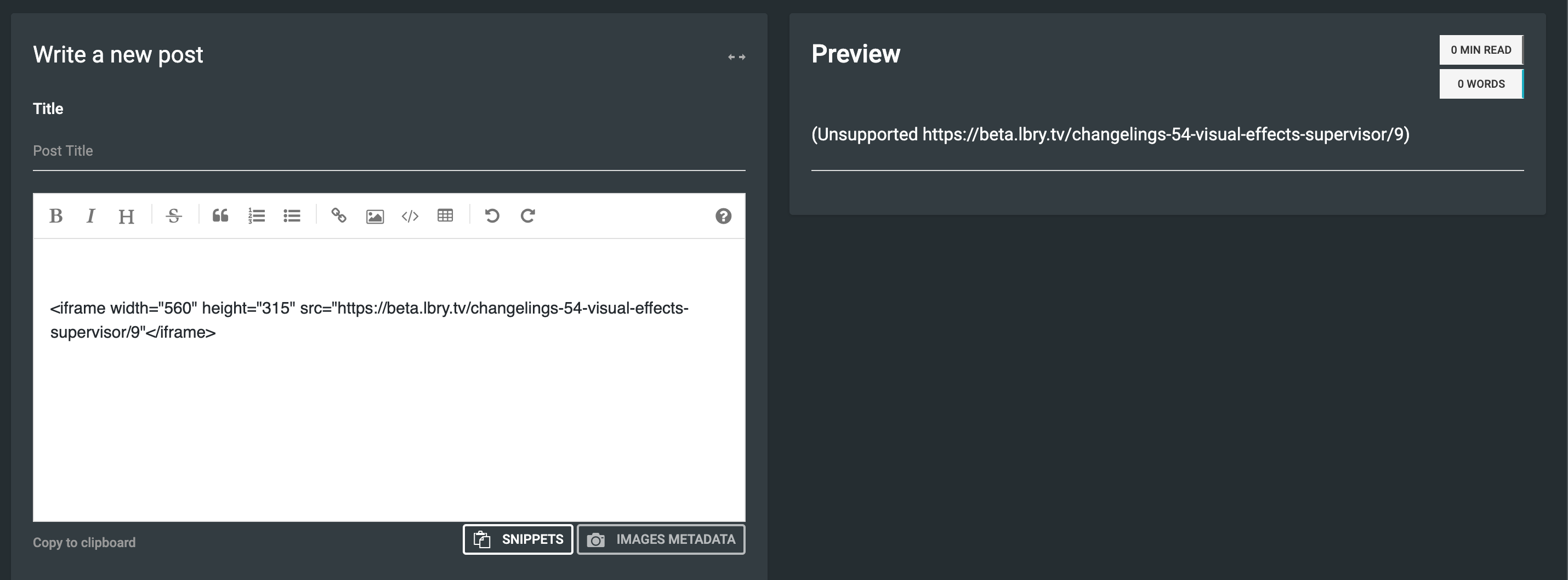 If I try a generic iframe markup I get and "unsupported" error.