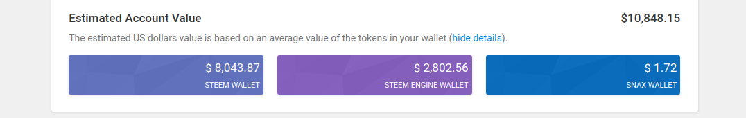 - The Estimated Account Value now includes the value of your Steem Engine tokens. It's still possible to view the split between the Steem/Steem Engine account balances