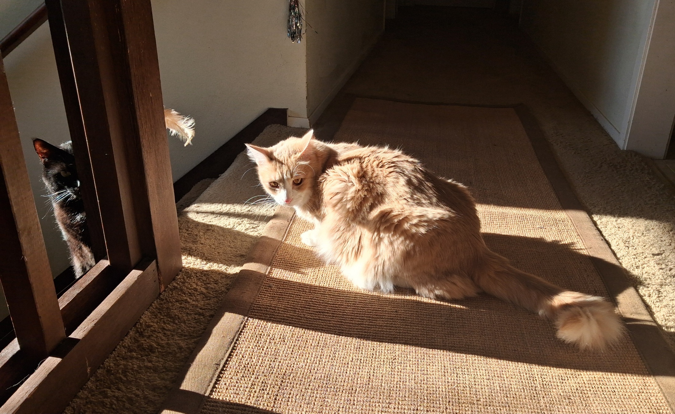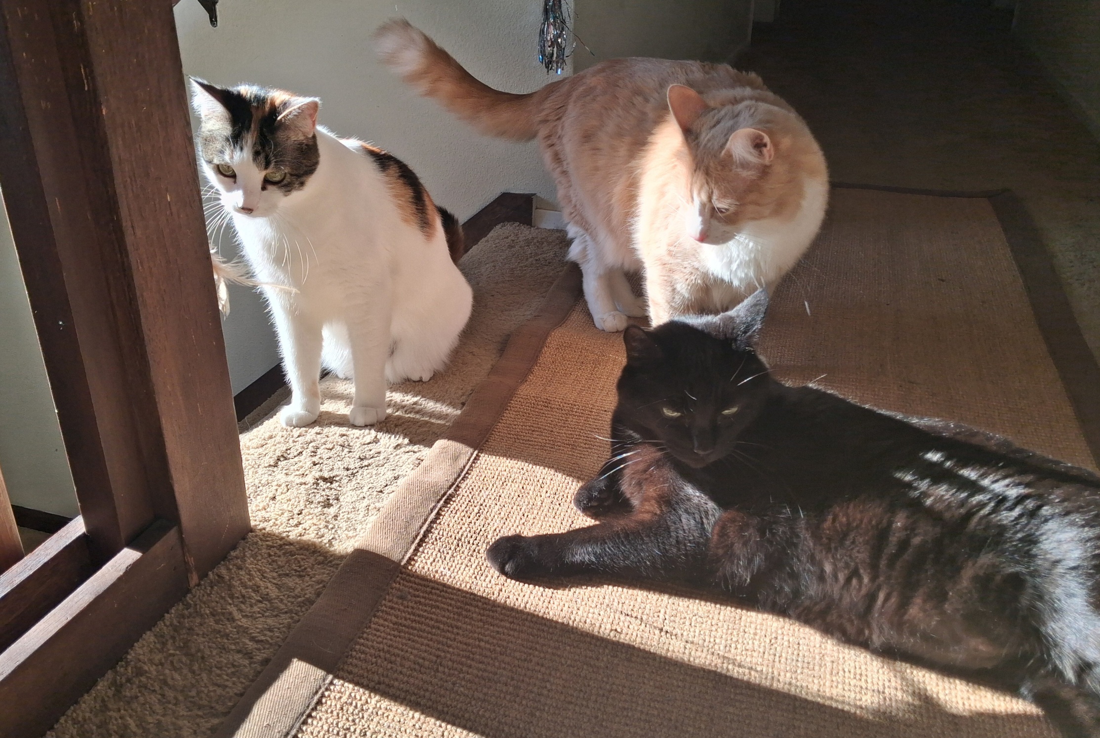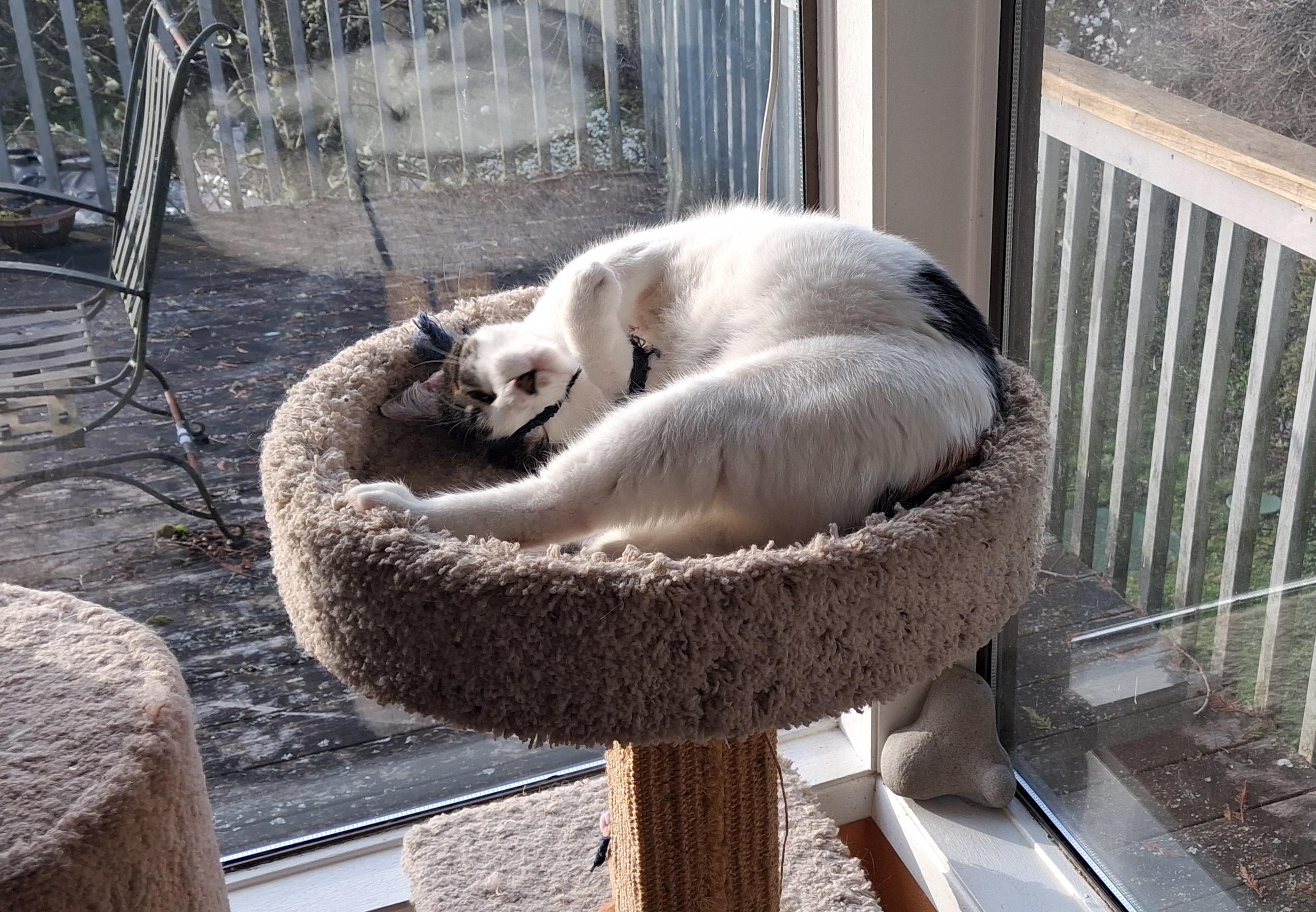 Yesterday was a lovely spring day around here with surprisingly warm sunshine, which meant there were some good sunny spots for the cats to sleep inside the house.