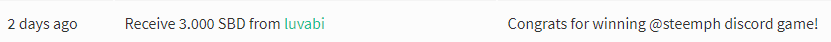 - May mga pa-contest din. Para dagdag saya, nagho-host ang mga admins ng mga contests at games sa loob ng server. Nitong nakaraang linggo lang, nag-host si @luvabi, isa sa mga admin ng week-long treasure hunt games para sa 1,000 members ng steemph discord! Nakigulo ako sa pinoy henyo nung isang araw at nanalo ng 3SBD. PS - hindi po ako ang winner, naka 1 point lang po ako. Haha.