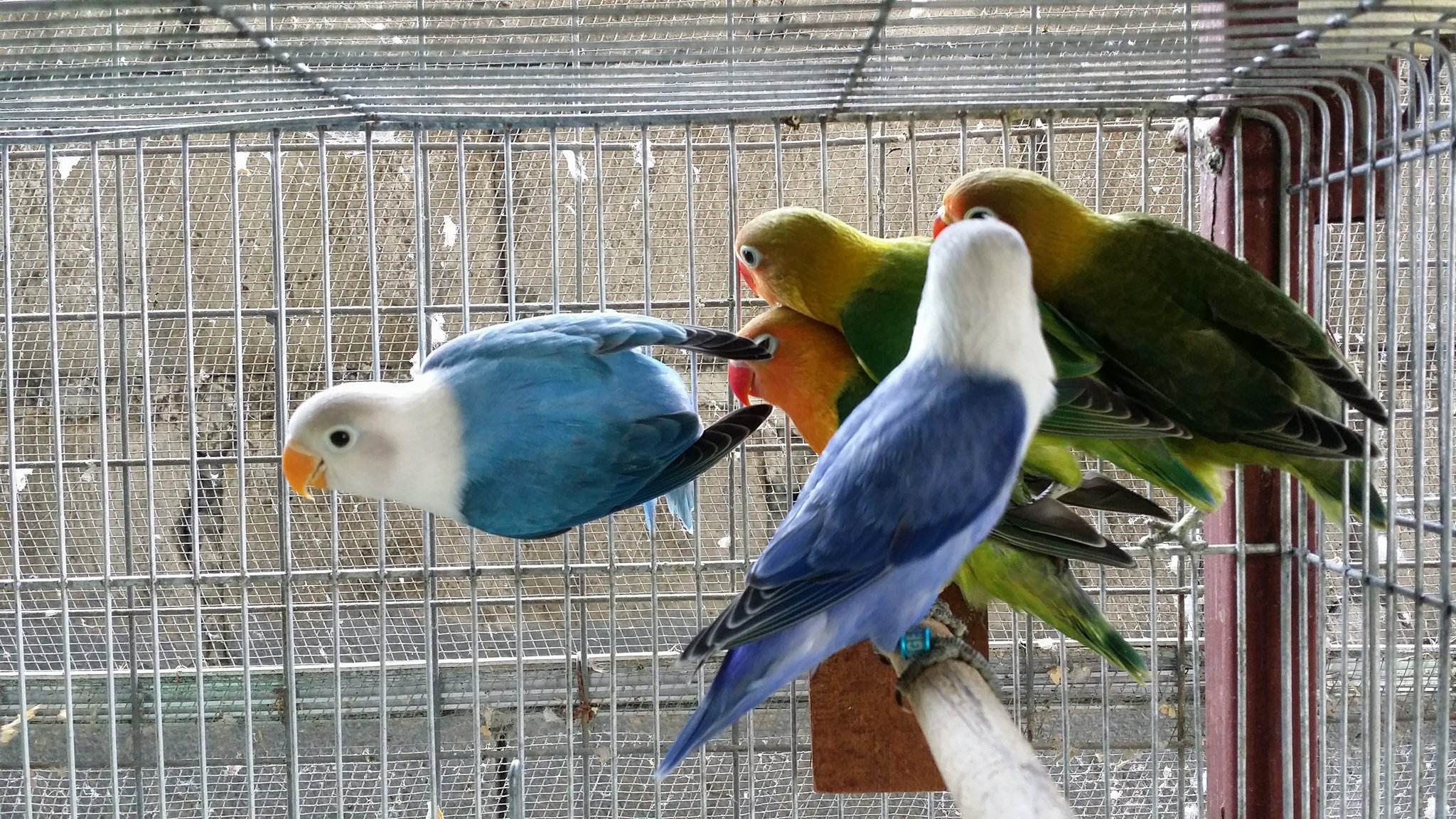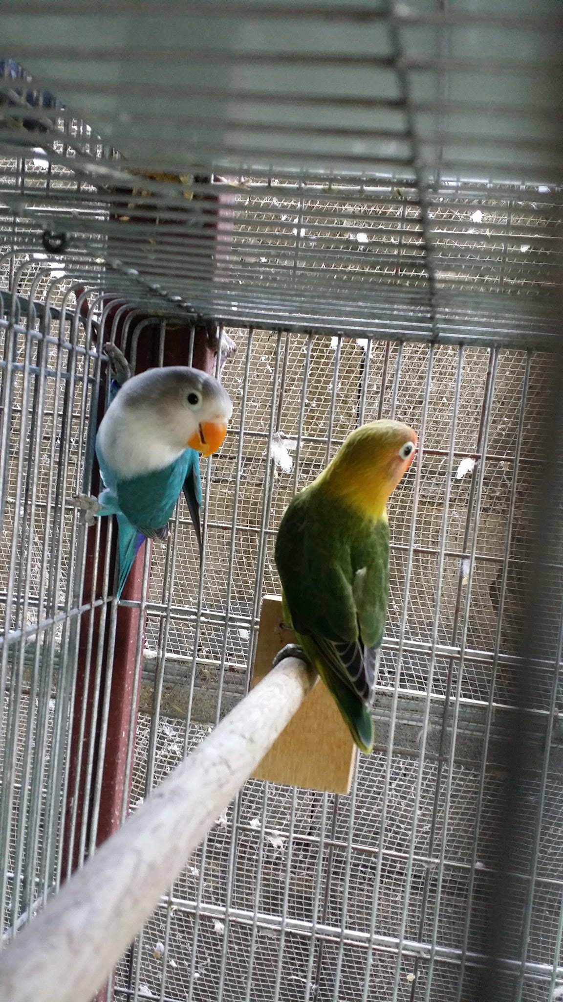 wow nice cage with cute birds...:)