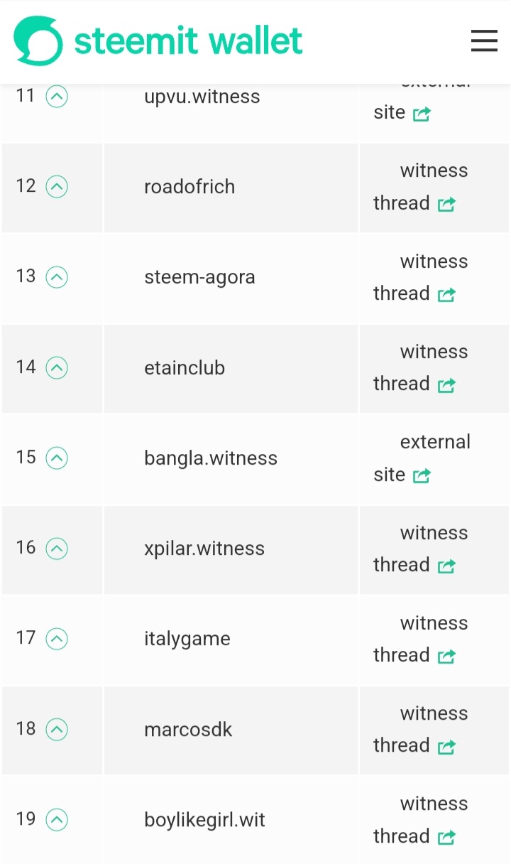 Then click on that and you will find a list of witness list. bangla.witness now is in 15 position. From there you can vote for bangla.witness.