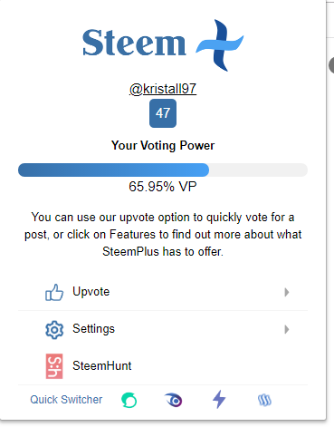 In dem Menü "Steemplus" kann man einfach die wichtigen Infos sich einholen, alles zentral auf einer Seite - das ist toll!
