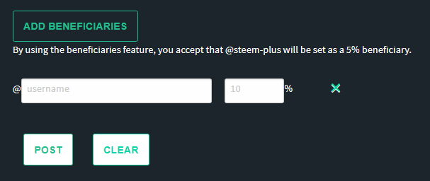 Man kann bei jedem Post welche hinzufügen, aber ohne die Premiumversion von Steemplus bekommt Steemplus 5% ab.
