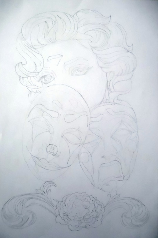 1. Faites le croquis du dessin au crayon graphite 2H.