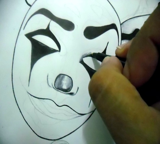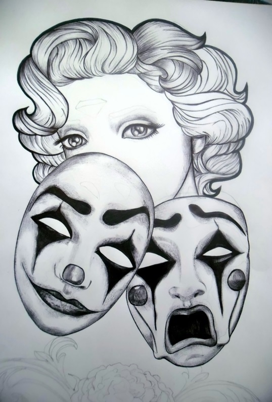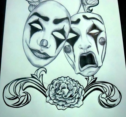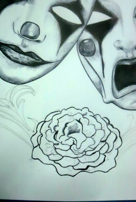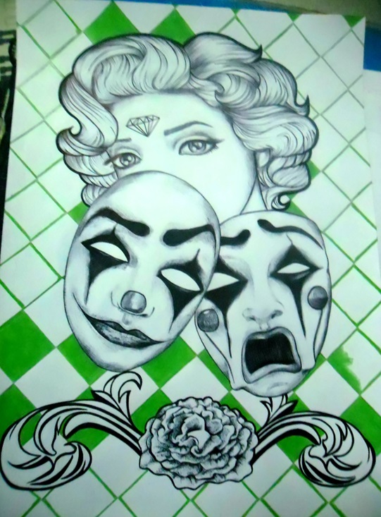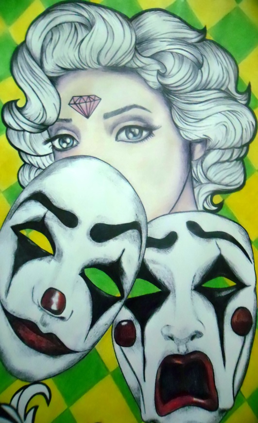 Dans ce dessin, je voulais montrer comment une personne peut avoir plusieurs masques pour certaines occasions, masquant ainsi ses peurs, mais il a appris qu'il pouvait s'en débarrasser en acceptant son être authentique, sa propre lumière.