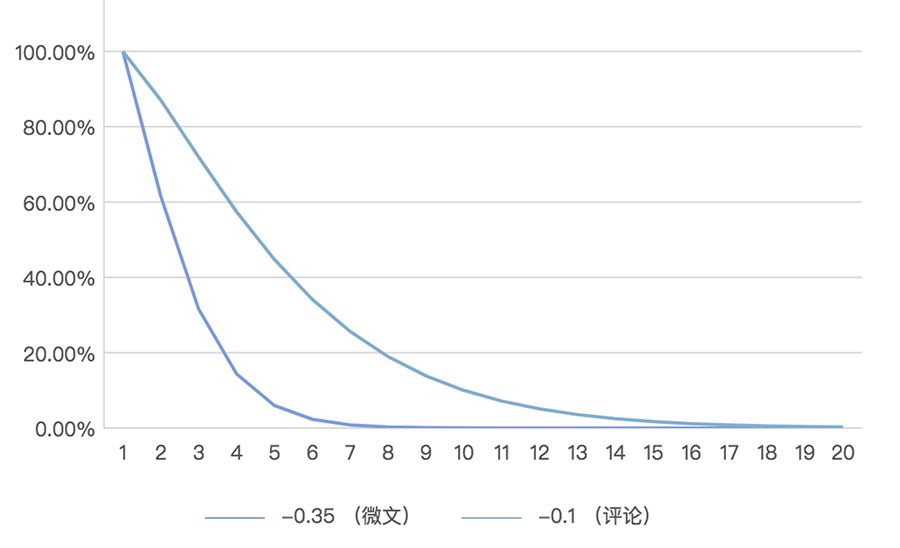 3. 发高质量微文及评论,并被赞。按照参数调整后新的衰减曲线,每天第一篇微文能够拿到100%的奖励,则第二篇可能拿到70%左右的奖励了,建议不要发太多的微文,数量越多后面的收益越低。