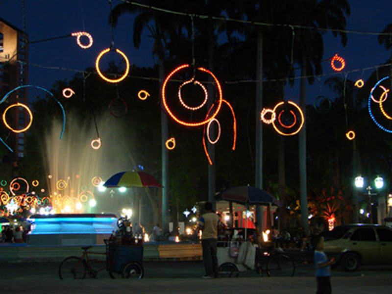 La siguiente foto es una visita nocturna a la plaza adornada para las fiestas navideñas.