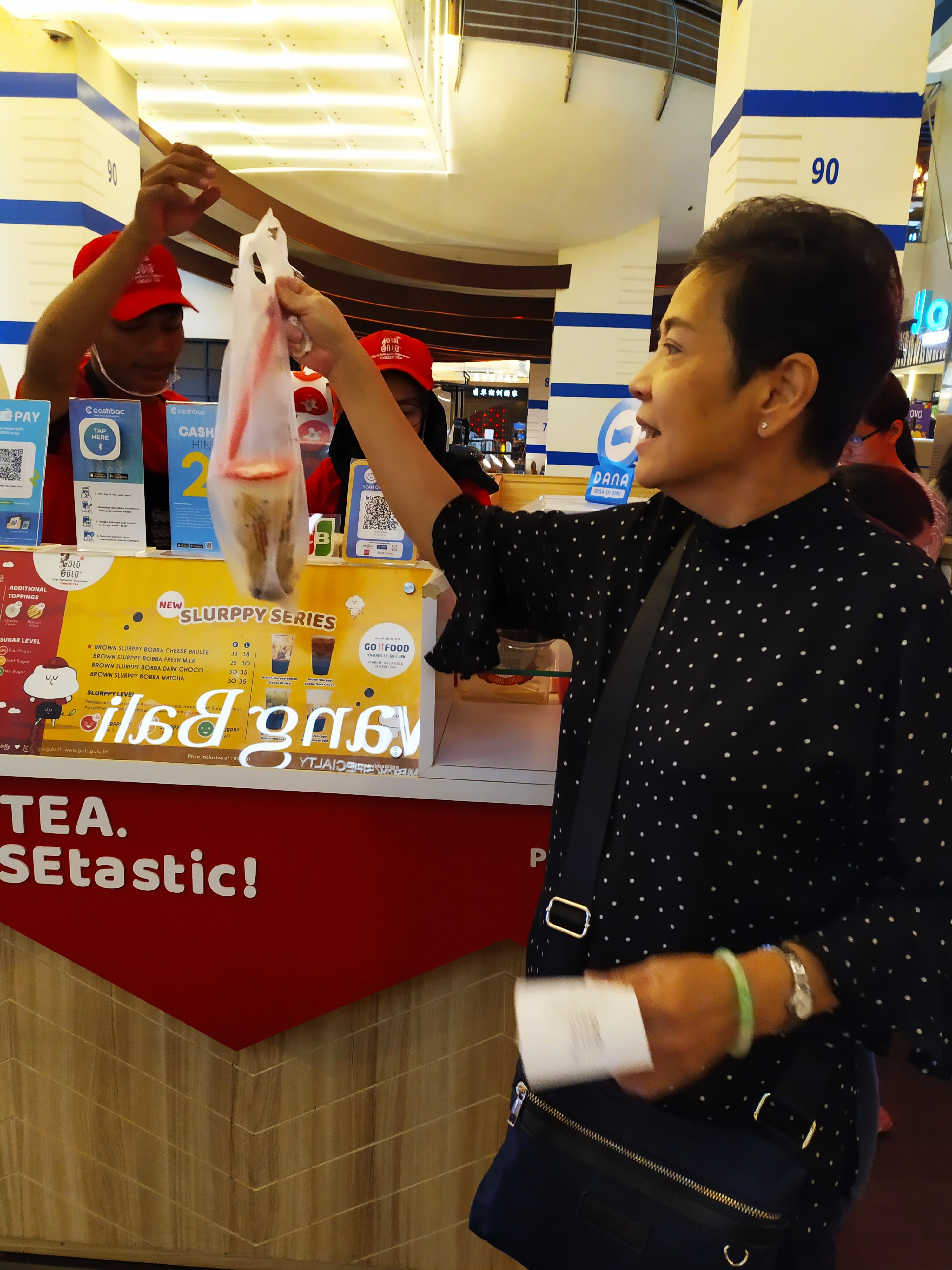 Actually we could drink it next to the booth cause they also had some chairs there but this time we would like to take the cheesy drink away.