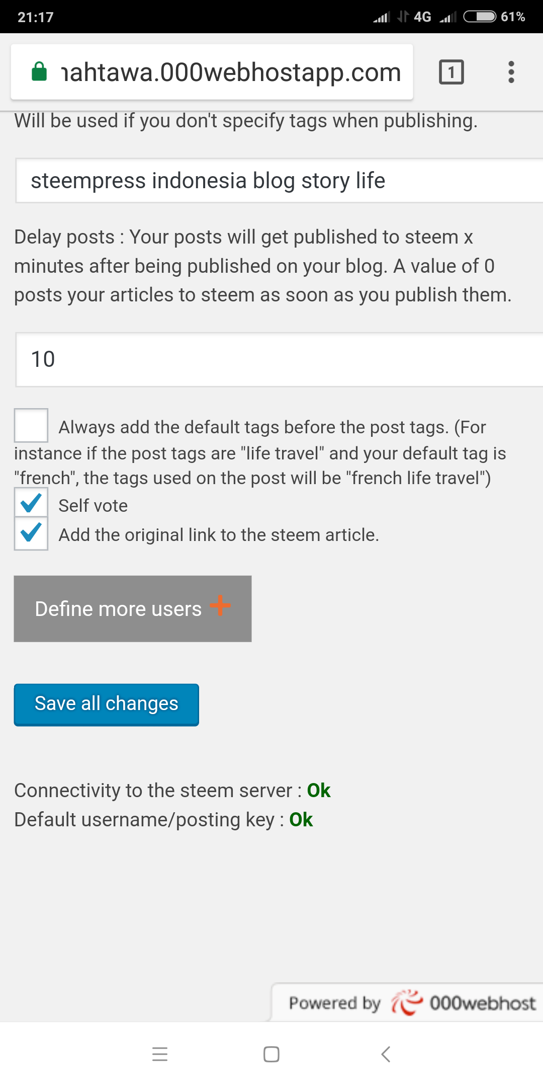 Naaah ini yang terakhir, kalau tulisan dibawah sudah oke dua dua nya ,berarti username dan postingkey yang anda masukkan sudah benar, dan sudah bisa mulai memosting. Postingan ini juga saya tulis melalui hp android merek xia ok mi. Jadi jangan takut gagal yang penting usaha