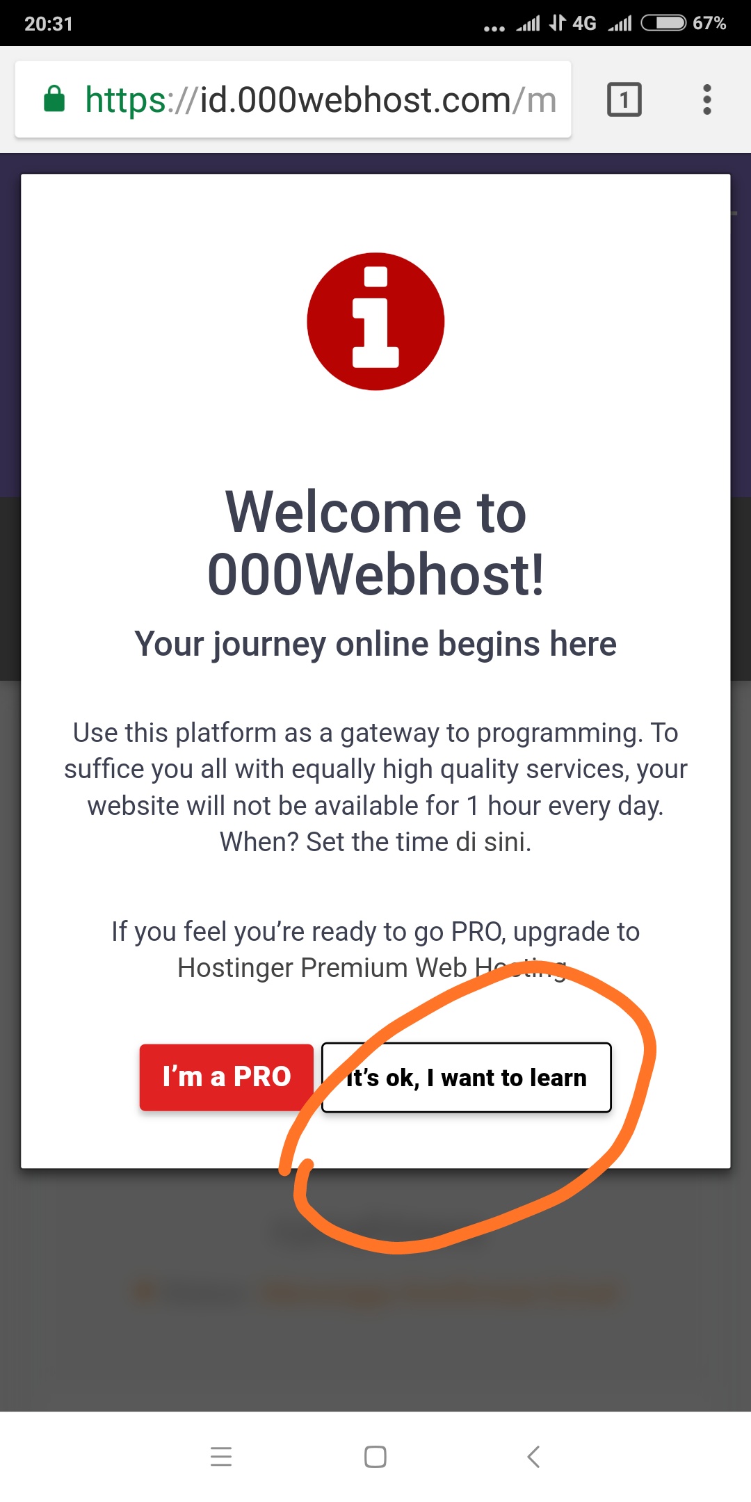 Kemudian tekan yang dilingkar, kalau tekan im a pro itu berbayar dan jangan hubungi saya. Lanjut lagi ya bro, trus kita diminta verifikasi, jadi buka email agan dan verifikasilah dengan selamat.
