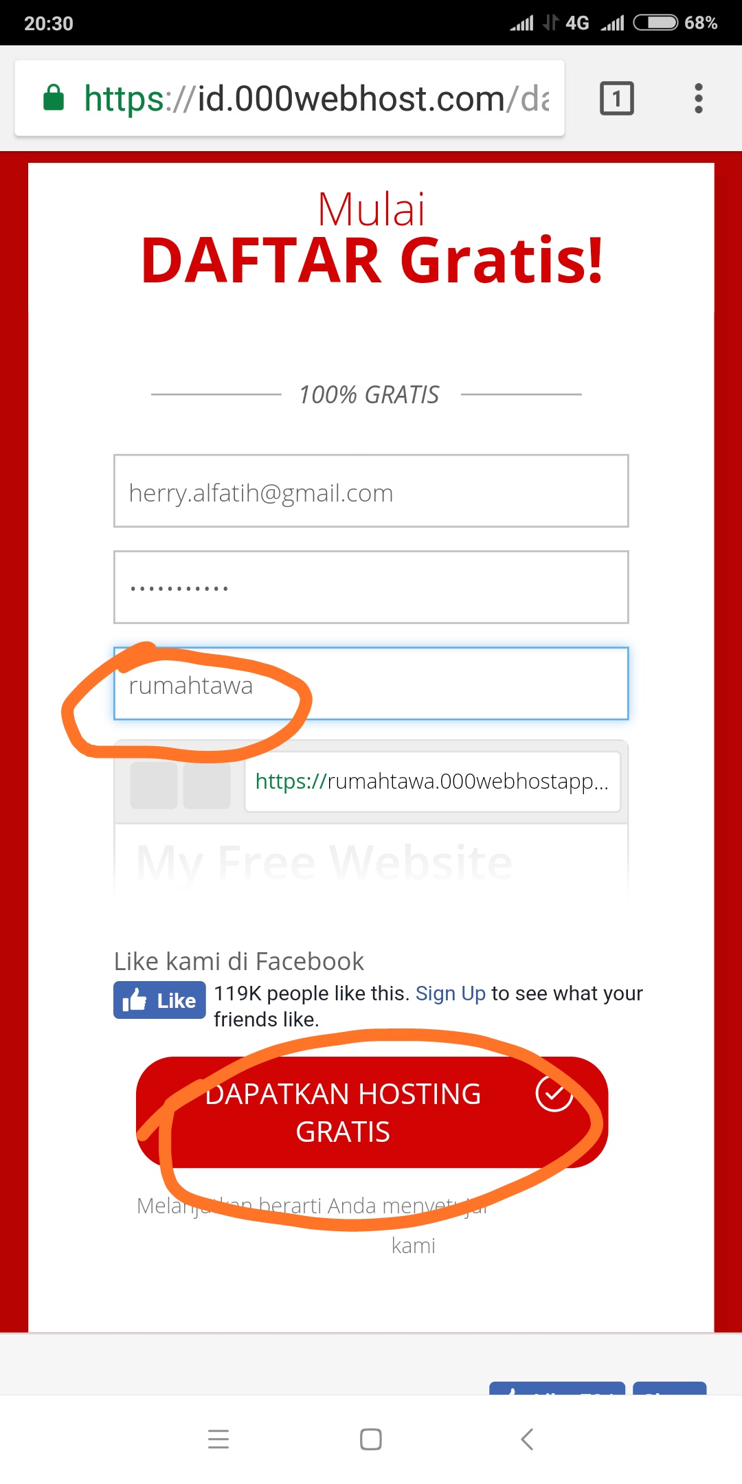 Ya, tekan di daftar gratis, kalau mau daftar berbayar, jangan bayarnya ke saya, karna saya bukan bendahara disini.
