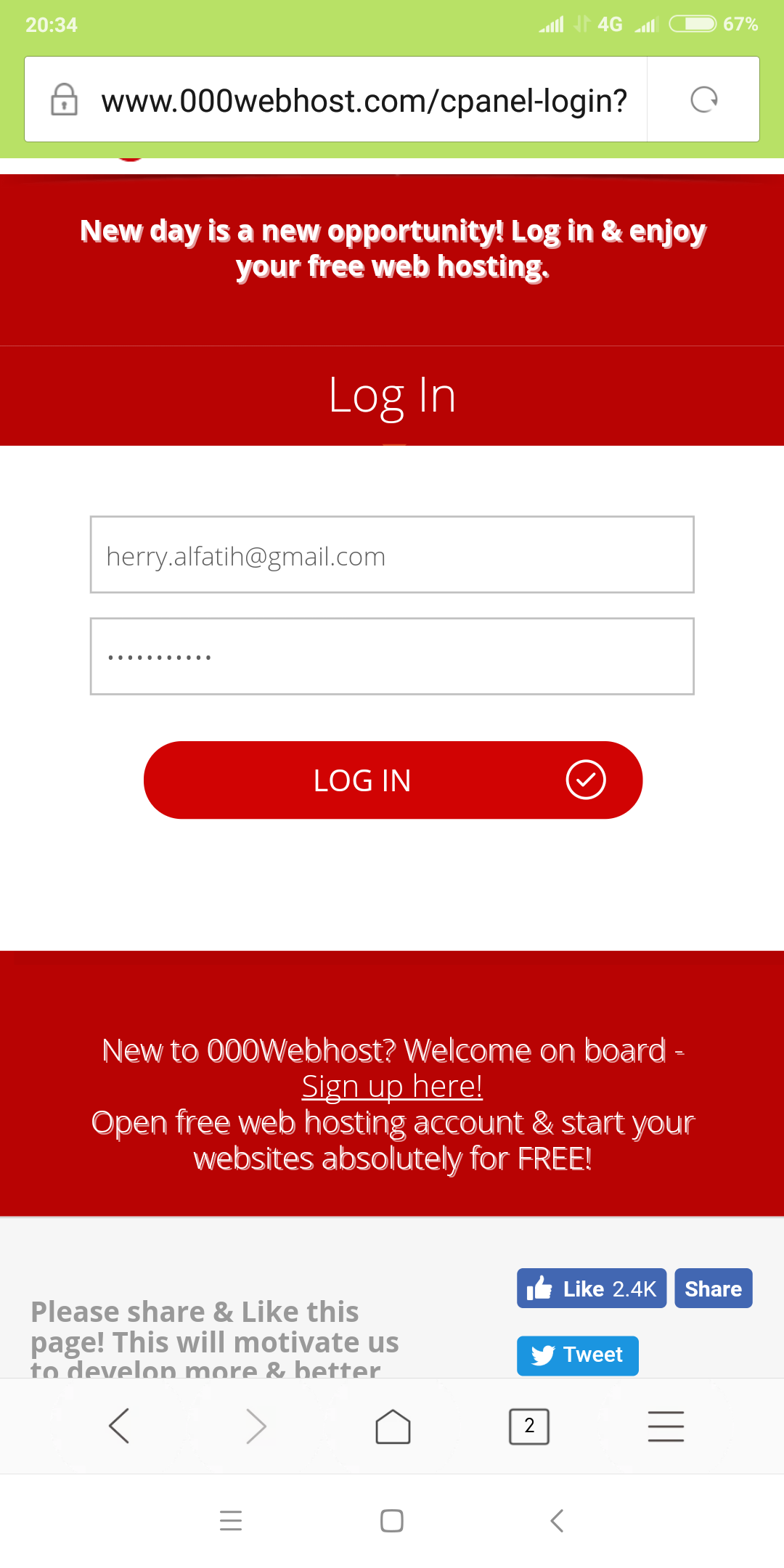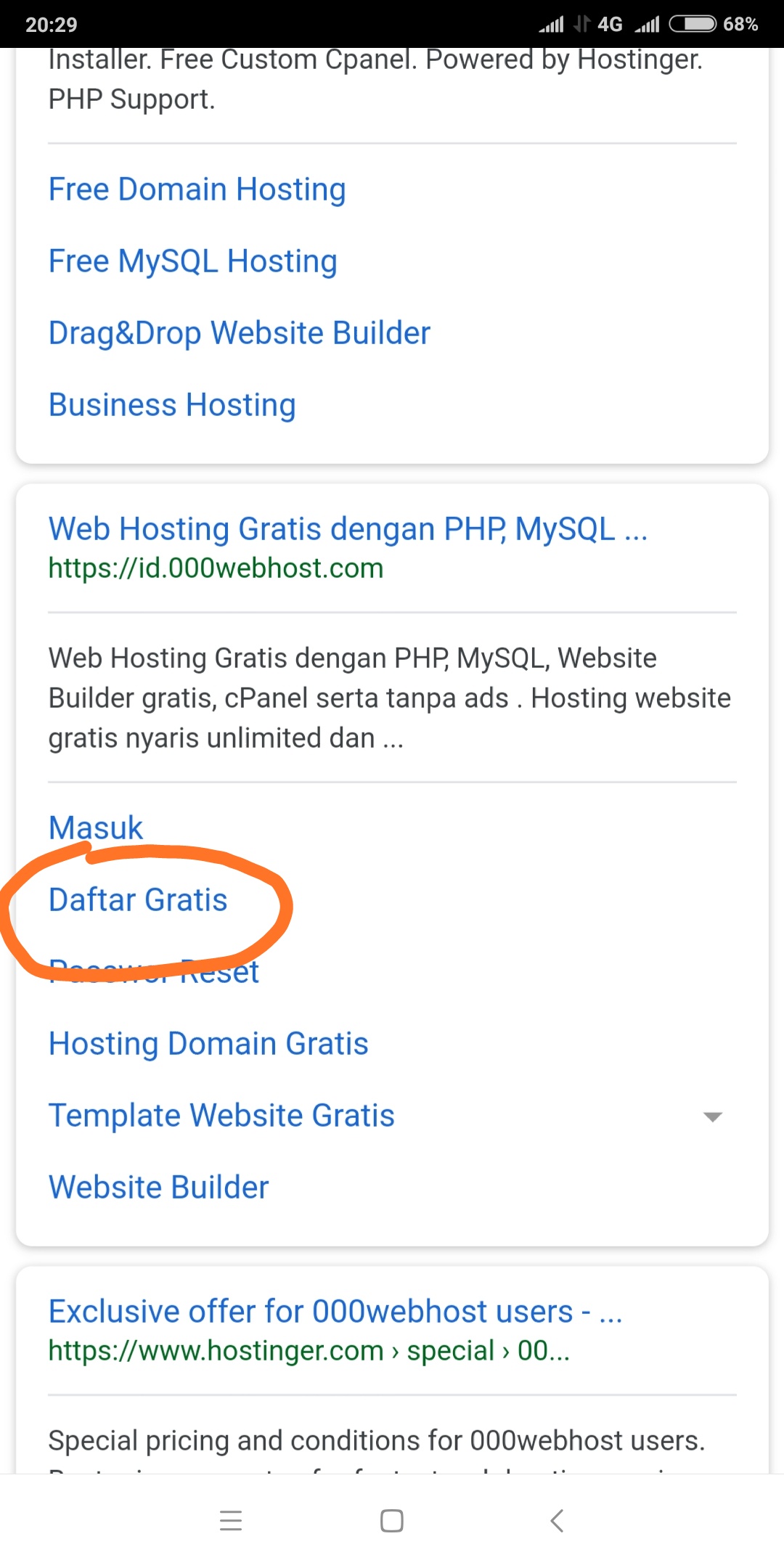 Buka crome atau google atau sebangsanya baik dari dunia nyata maupun gaib, ketik 000hosting trus muncul gini