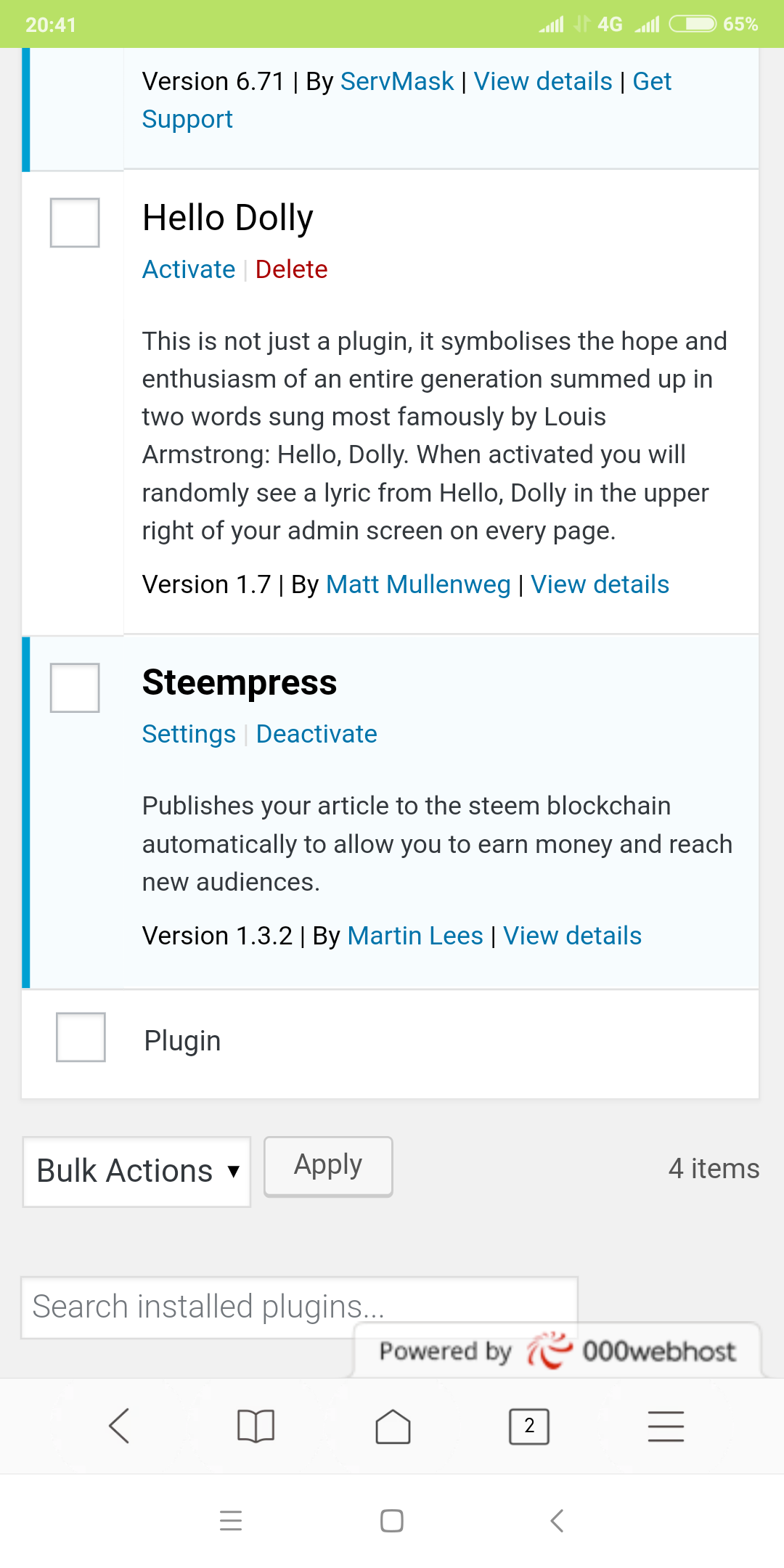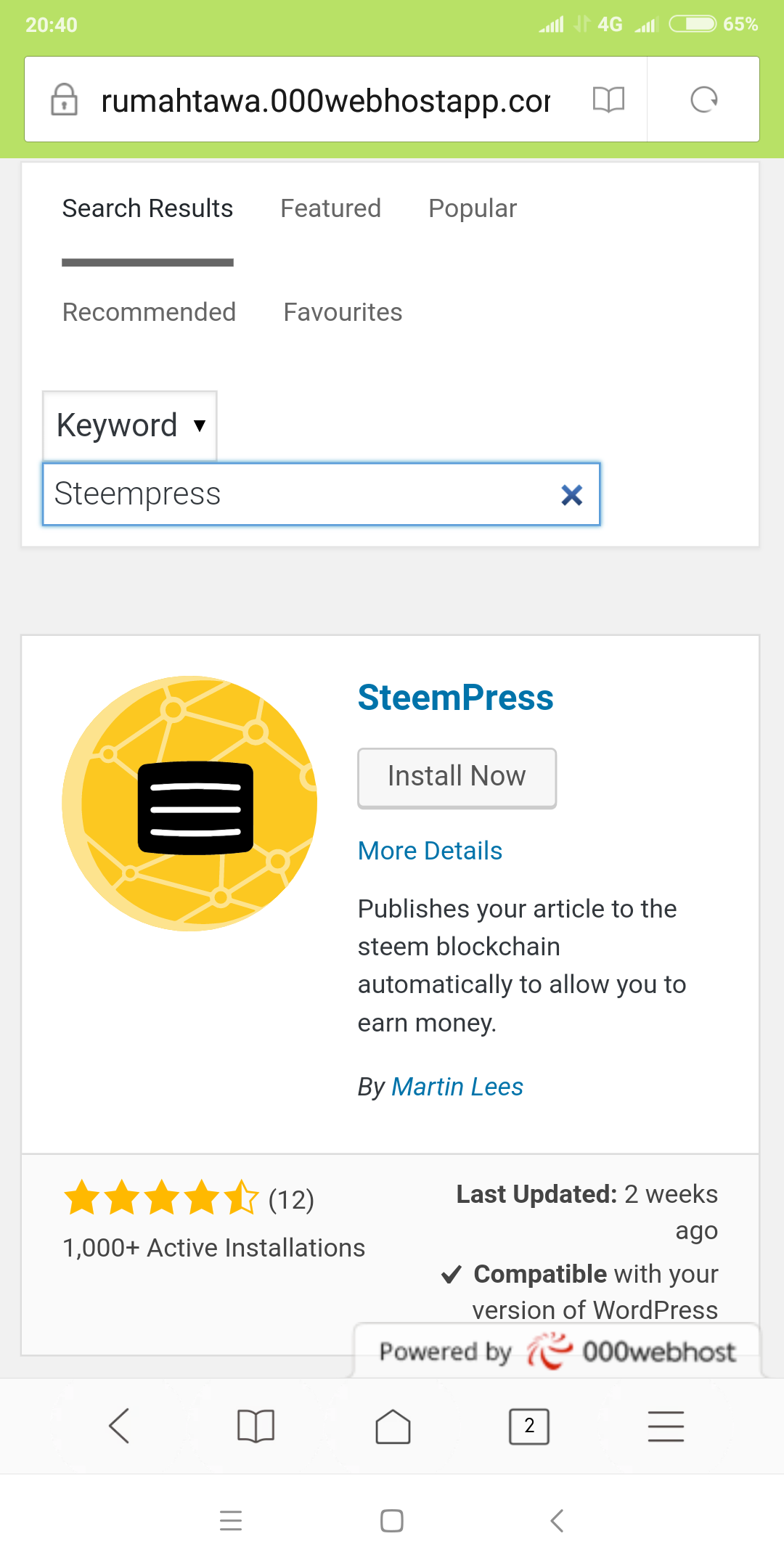 Nah udah masuk kan, langkah selanjutnya tekan add plugin, trus cari plugin steempress lalu instal