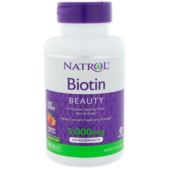 Natrol, Биотин, Экстра сила, Клубника, 5000 мкг, 150 таблеток