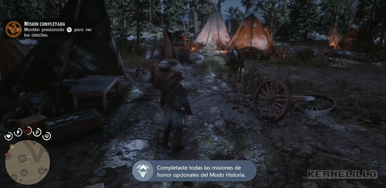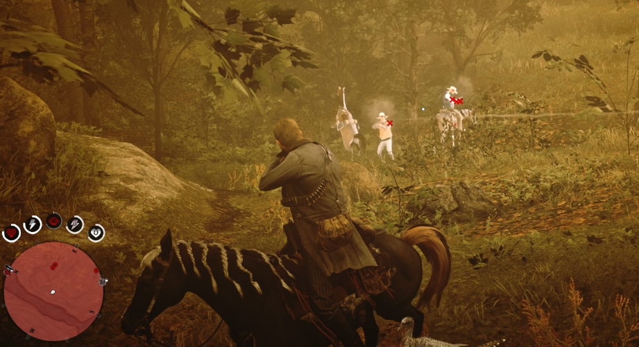 Con ese poder, te animamos a hacer lo que creas conveniente y a tu propio ritmo. Una larga serie de misiones de historia le presentará algunas de las maneras en que puede pasar su tiempo, incluyendo la caza, la pesca, la cría de caballos y el robo.Además de la mecánica de diversas actividades, también se le presentan algunos elementos de semi-realismo con los que debe lidiar. Principalmente, necesita comer para recargar sus "núcleos" de salud, resistencia y Dead Eye, que se agotan con el tiempo. Comer demasiado o muy poco resultados en cambios de peso y debuffs de estadísticas. Comer en sí no es un problema, y tampoco lo es mantener núcleos en general, pero comer lo suficiente para mantener un peso promedio es intrusivo; a pesar de experimentar con qué y con qué frecuencia comía, no podía sacar a Arthur del rango de bajo peso, y comer con más frecuencia llevaría mucho tiempo para justificarlo. No tienes que dormir (aunque puedes pasar el tiempo y rellenar tus núcleos), y sobrevivir a las temperaturas cálidas o frías se reduce a elegir el atuendo adecuado según el clima .